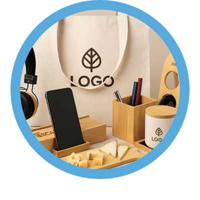 Hay muchas materialidades para elegir: metal, madera, goma, PVC, ABS, caña de trigo, PU, cuero, tela, corcho, cartón, bambu, RPET, TNT, plásticos reciclados, acrílicos, otros a pedido.